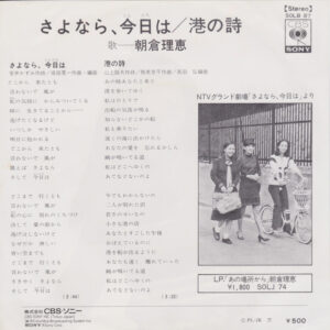 朝倉理恵 = Rie Asakura* – さよなら、今日は = Sayonara, Konnichiwa (7″, Single)
