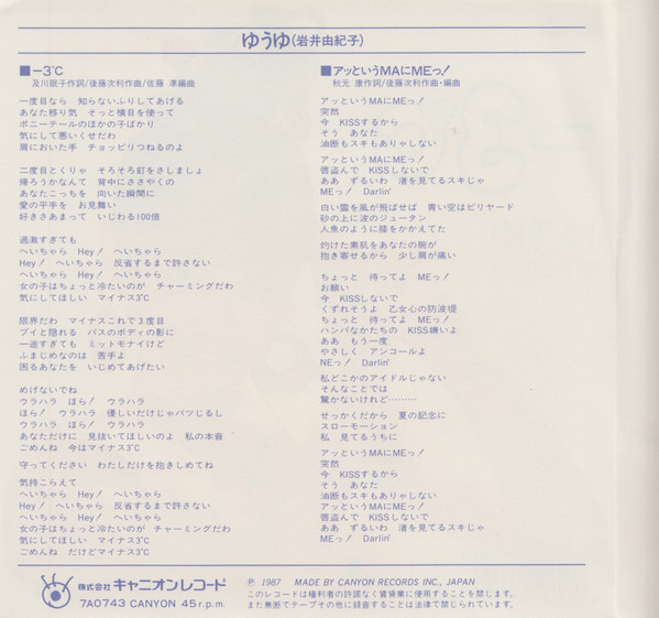 ゆうゆ, 岩井由紀子 – -3ºC (7″, Single)
