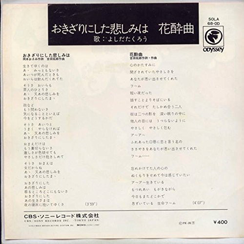 よしだたくろう – おきざりにした悲しみは (7″, Single)
