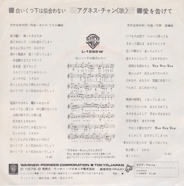 アグネス・チャン – 白いくつ下は似合わない = Shirou Kutsushita Wa Niawanai (7″, Single)