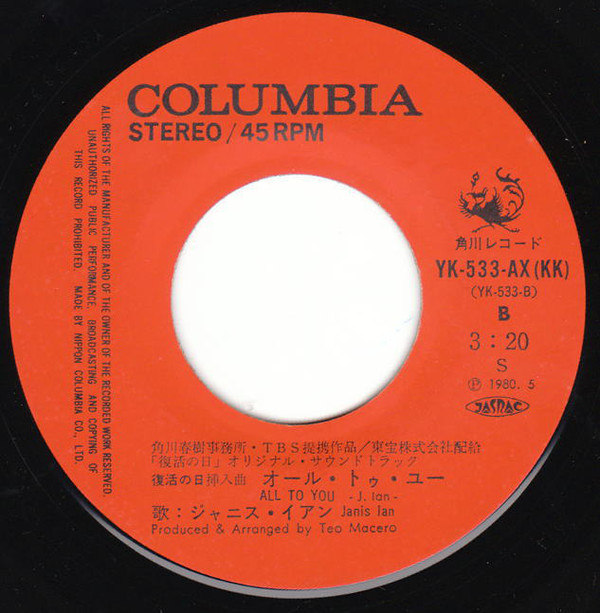 レーベル : Columbia,Kadokawa Records – YK-533-AX, YK-533-AX(KK)