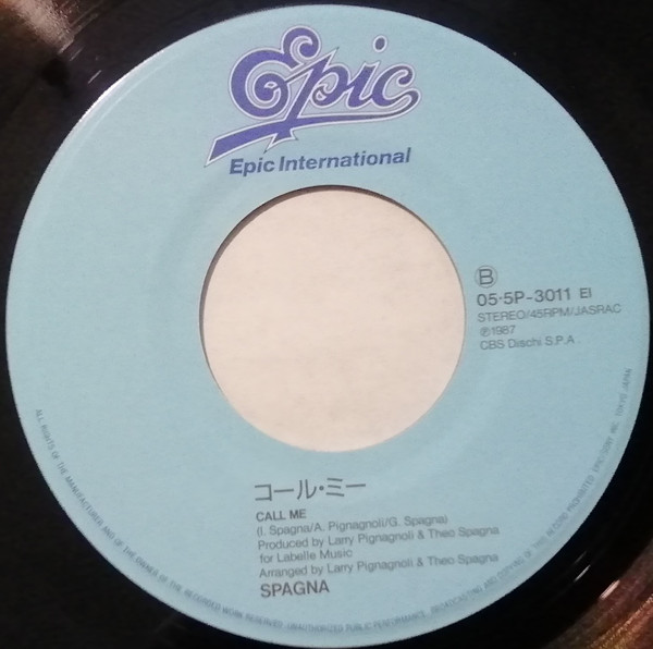 スパーニャ = Spagna – コール・ミー(U・S・リミックス) = Call Me (U.S.Remix) (7″, Single)