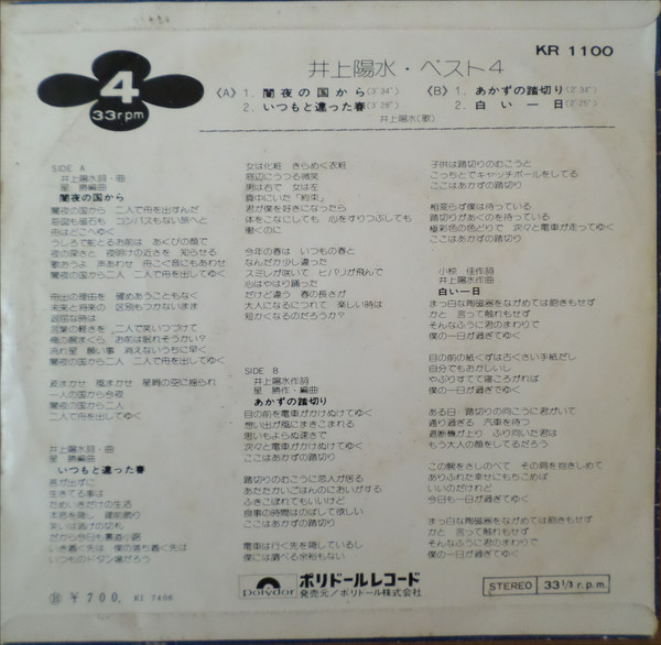 井上陽水 – ベスト4 (7″, EP, Comp)