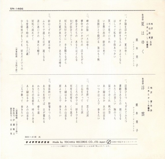 レーベル : Teichiku Records – SN-1466