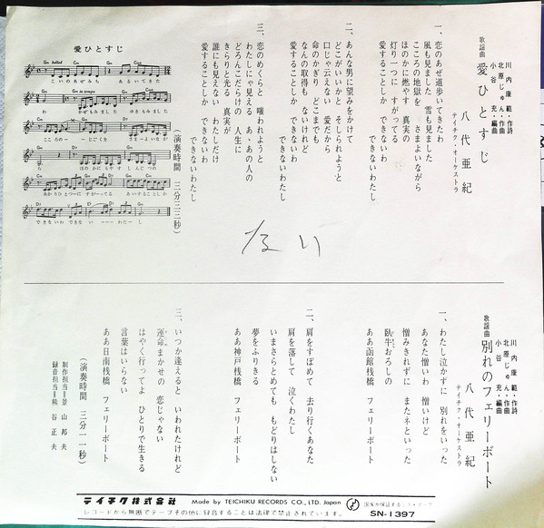 レーベル : Teichiku Records – SN-1397