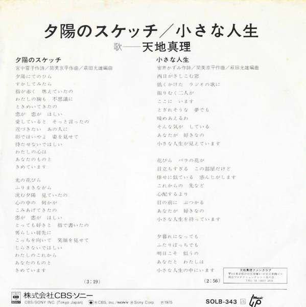 天地真理 – 夕陽のスケッチ (7″, Single)