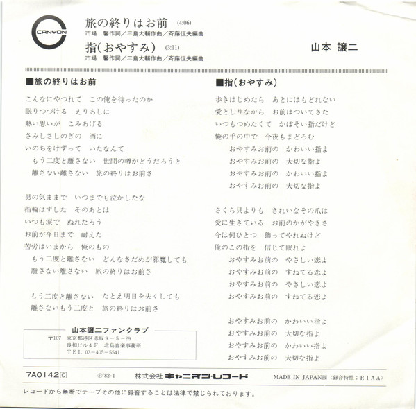山本譲二 – 旅の終りはお前 (7″, Single)