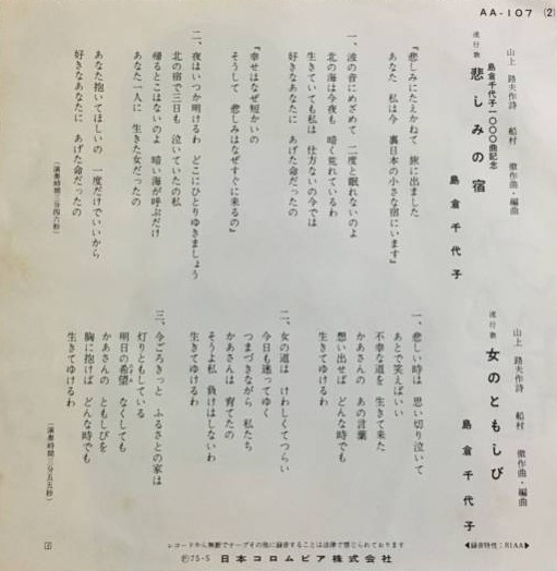 島倉千代子 – 悲しみの宿 (7″, Single)