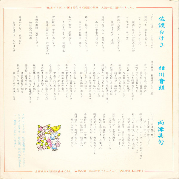 新潟交通民謡研究会 – 佐渡民謡の思い出を – 観光バスでおそわった (Flexi, 7″, EP, Red)
