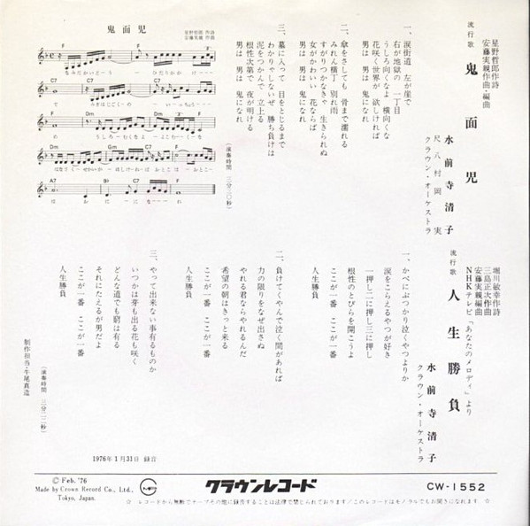 水前寺清子 – 鬼面児 (7″, Single)