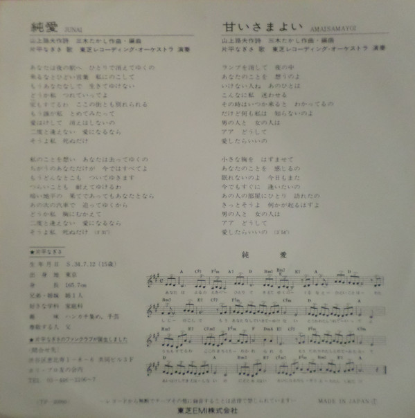 片平なぎさ – 純愛 = Junai (7″, Single)