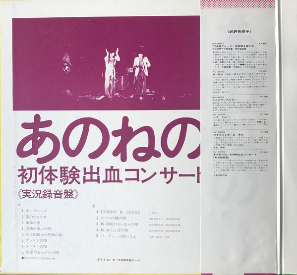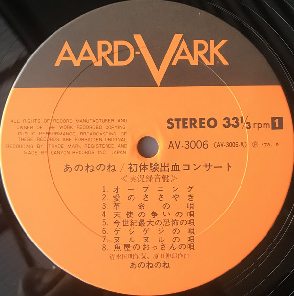 あのねのね – 初体験出血コンサート (LP, Album, Gat)