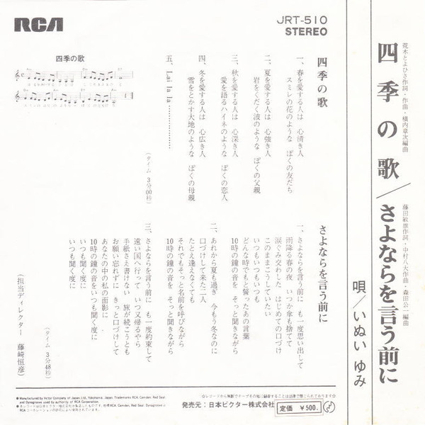 いぬい ゆみ – 四季の歌 (7″, Single)