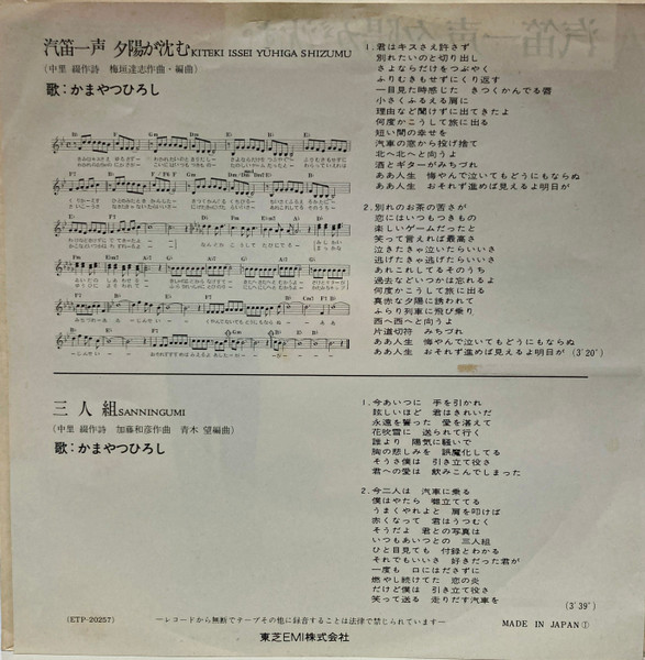 かまやつひろし – 汽笛一声 夕陽が沈む (7″, Single, Promo)