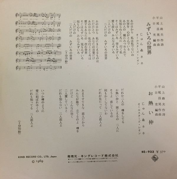 じゅん&ネネ – みずいろの世界 (7″, Single)