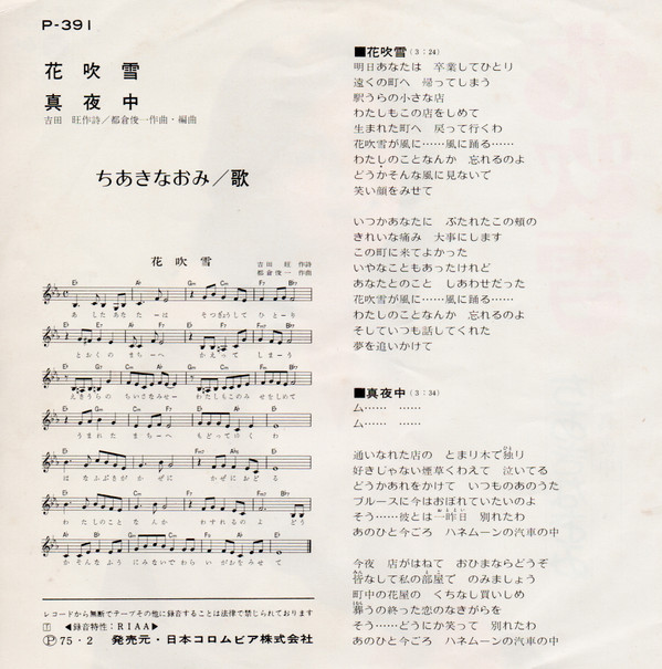 ちあき なおみ – 花吹雪 (7″, Single)