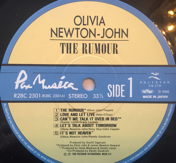オリビア・ニュートン・ジョン – The Rumour = 噂 (LP, Album)