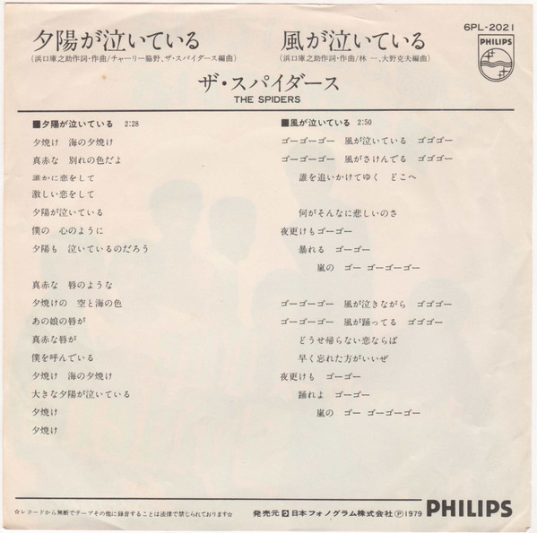 ザ・スパイダース – 夕陽が泣いている / 風が泣いている (7″, Single)