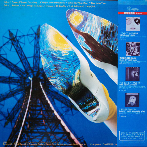 Two different obi strips exist (The blue one is first press; the yellow one hypes the album’s first two big hit singles)