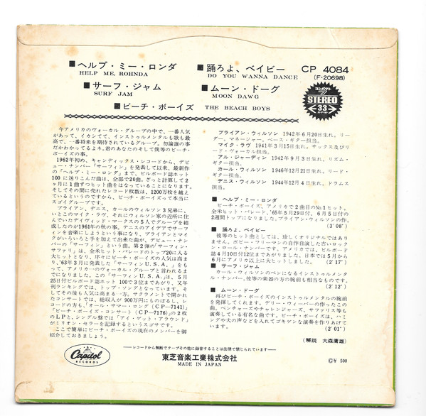 ビーチ・ボーイズ = The Beach Boys – ヘルプ・ミー・ロンダ / 踊ろよ,ベイビー / サーフ・ジャム / ムーン・ドーグ (7″)