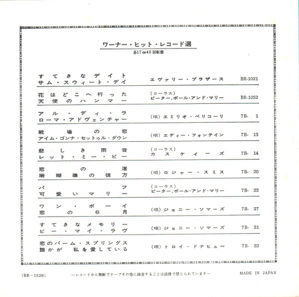 ピーター・ポール&マリー – 悲惨な戦争 (The Cruel War) / 鐘の音に導かれて(Mon Vrai Destin) (7″, Single)