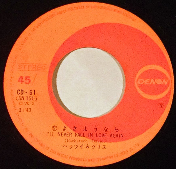 ベッツイ&クリス = Betsy & Chris – 恋よさようなら = I’ll Never Fall In Love Again (7″, Single)