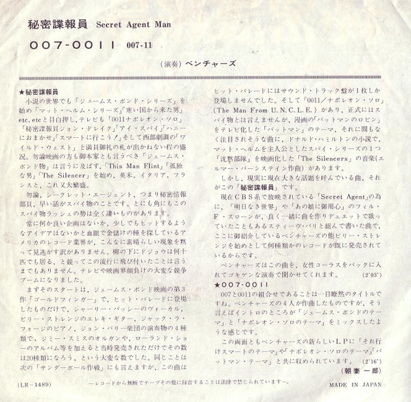 ベンチャーズ = The Ventures – 秘密諜報員 = Secret Agent Man (7″, Single, Bla)