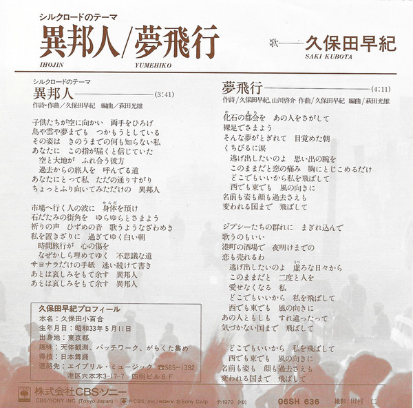 久保田早紀 = Saki Kubota – 異邦人 = Ihojin (7″, Single, Ora)