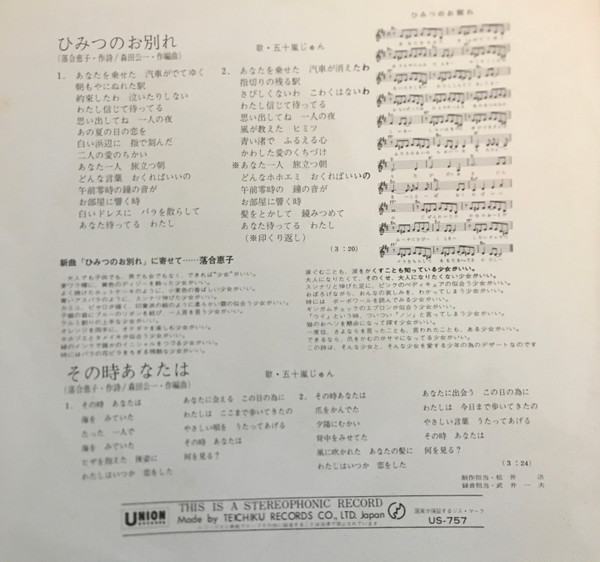 五十嵐じゅん – ひみつのお別れ (7″, Single)