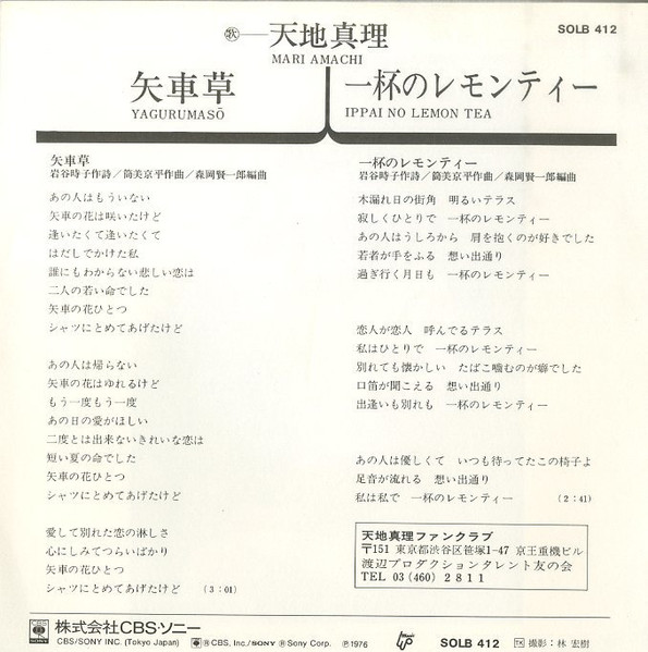 レーベル : CBS/Sony – SOLB 412