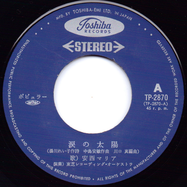 安西マリア = Maria Anzai – 涙の太陽 (7″, Single)