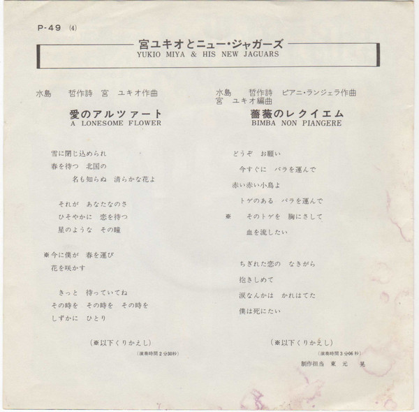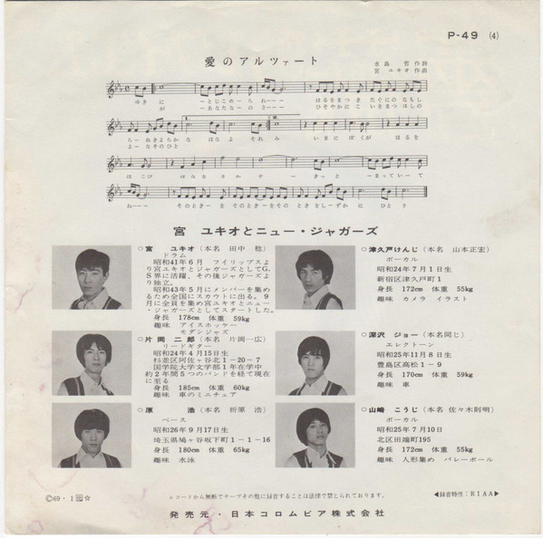 宮ユキオとニュー・ジャガーズ – 愛のアルツァート (7″, Single)