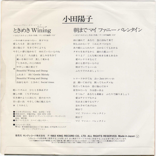 小田陽子* – ときめきWining (7″, Single)