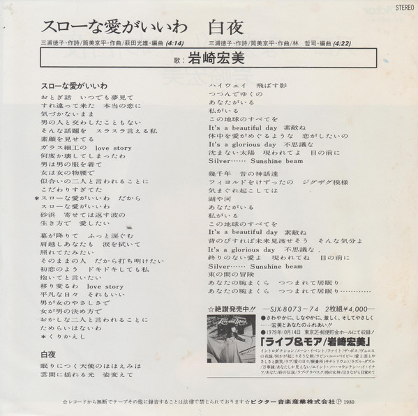 岩崎宏美 – スローな愛がいいわ (7″, Single)