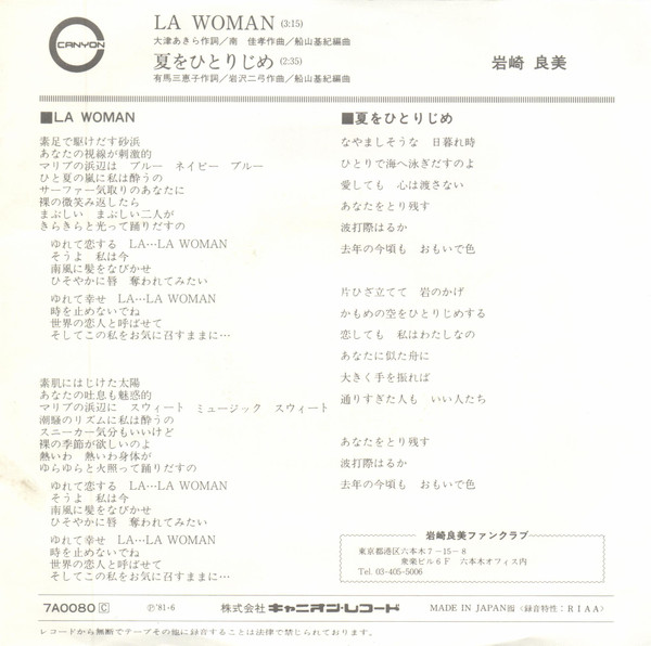 岩崎良美* – LA Woman (7″, Single)