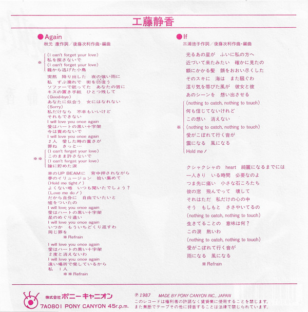 工藤静香 – Again (7″, Single)