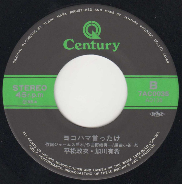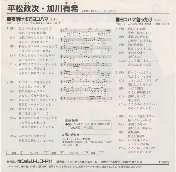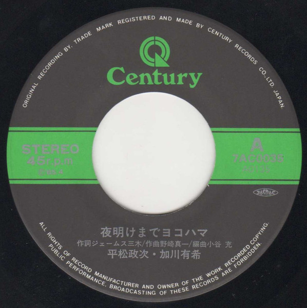 平松政次, 加川有希 – 夜明けまでヨコハマ (7″, Single)