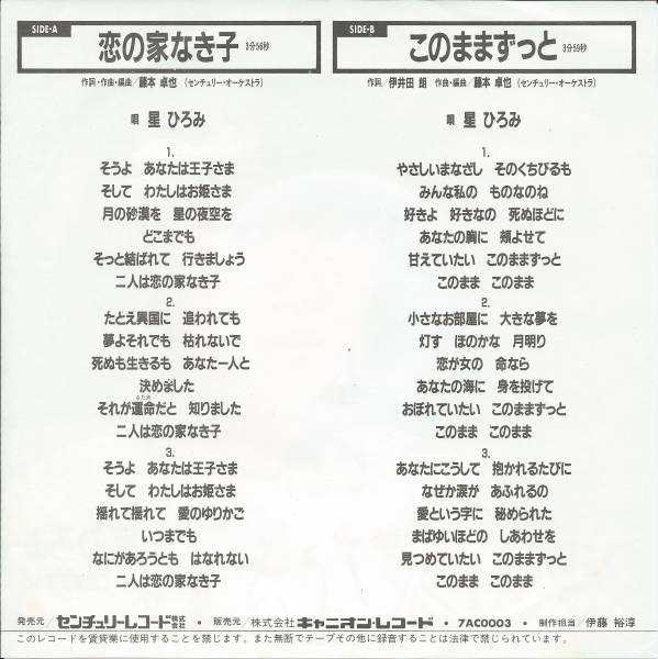 星ひろみ – 恋の家なき子 (7″, Single)