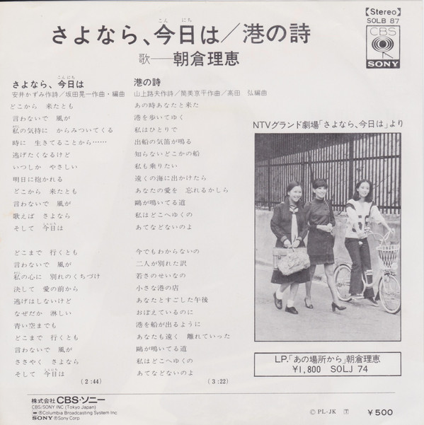 朝倉理恵 = Rie Asakura* – さよなら、今日は = Sayonara, Konnichiwa (7″, Single)