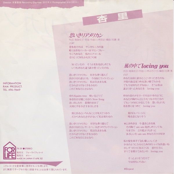 フォーマット : Vinyl, 7″, 45 RPM, Single, Stereo