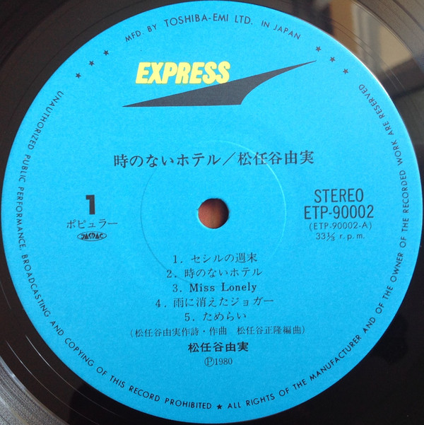 松任谷由実 = Yuming – 時のないホテル (LP, Album)