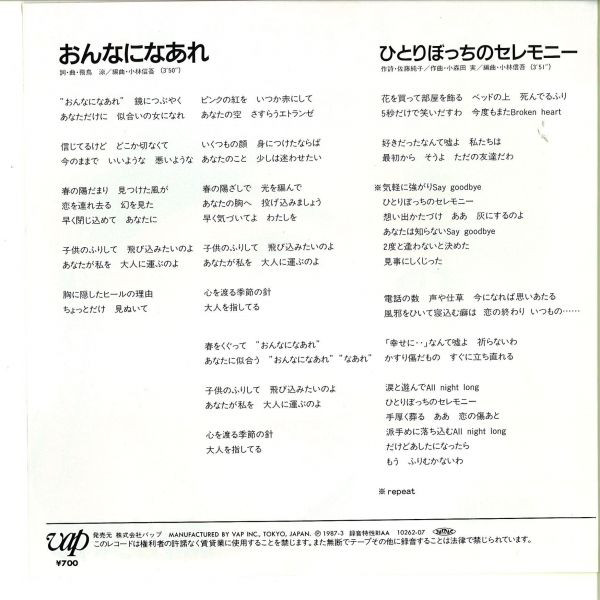 森川美穂 = Miho Morikawa – おんなになあれ (7″, Single)