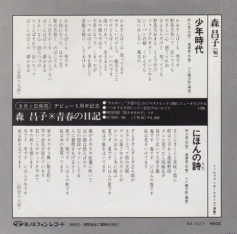 森 昌子 – 少年時代 (7″, Single)