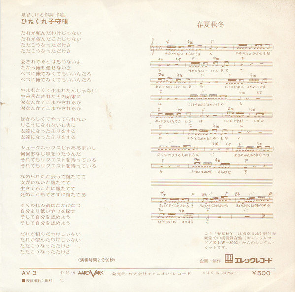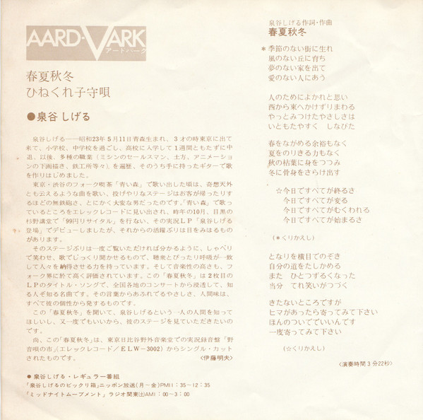 泉谷しげる* – 春夏秋冬 / ひねくれ子守唄 (7″, Single)