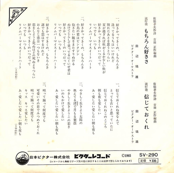 田辺靖雄 – もちろん好きさ (7″, Single)