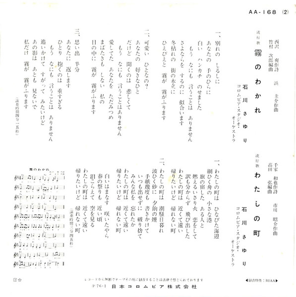 石川さゆり – 霧のわかれ (7″, Single)