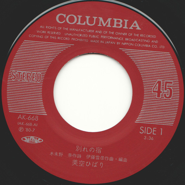 Vinyl (VG) Picture cover (VG+) / 美空ひばり = Hibari Misora – 別れの宿 / 浮き草ふたり /