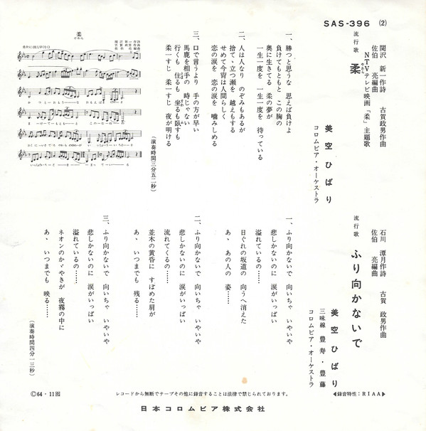 Vinyl (VG) Picture cover (VG+) / 美空ひばり = Hibari Misora – 柔 /