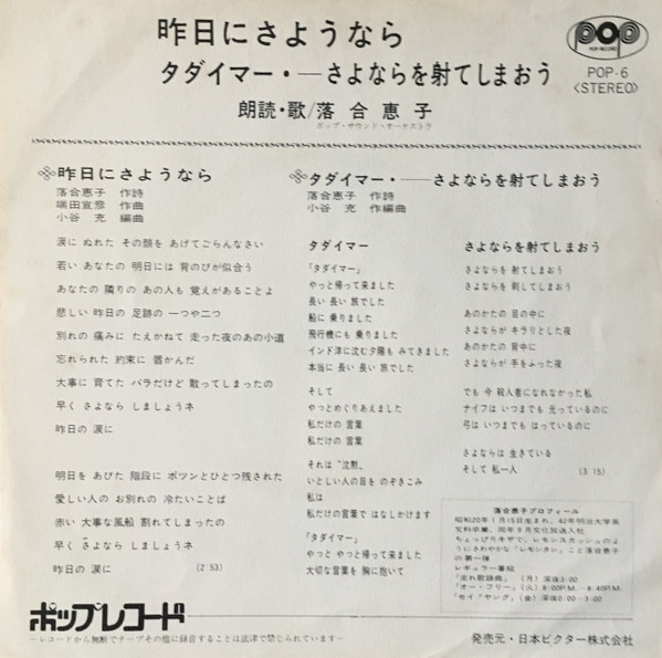 フォーマット : Vinyl, 7″, 45 RPM, Single, Stereo