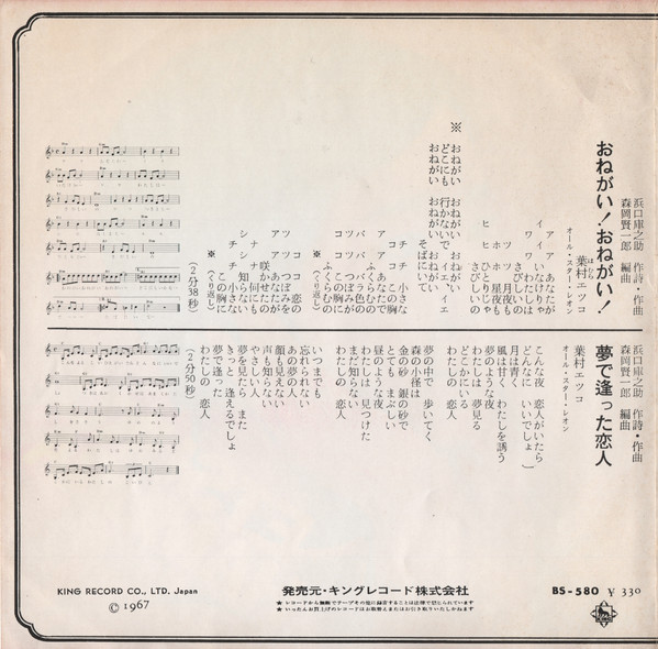 葉村エツコ – おねがい!おねがい! (7″, Single)